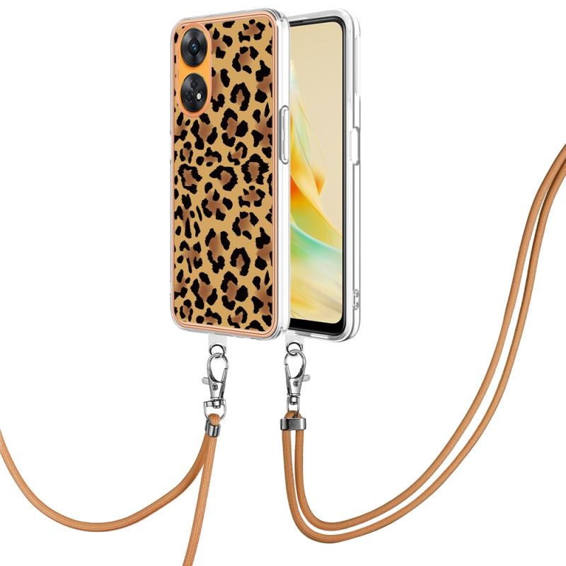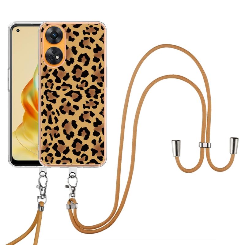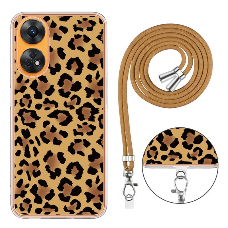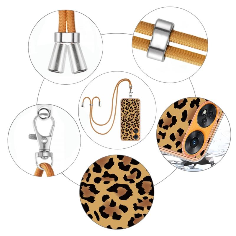 For OPPO Reno8 T 4G Electroplating Dual-side IMD Phone Case with Lanyard(Leopard Print)