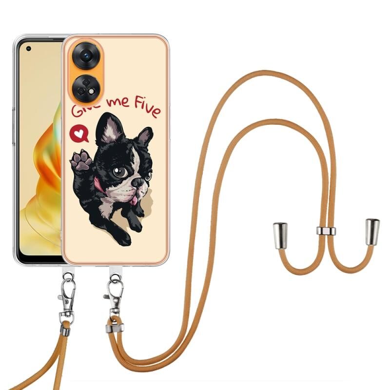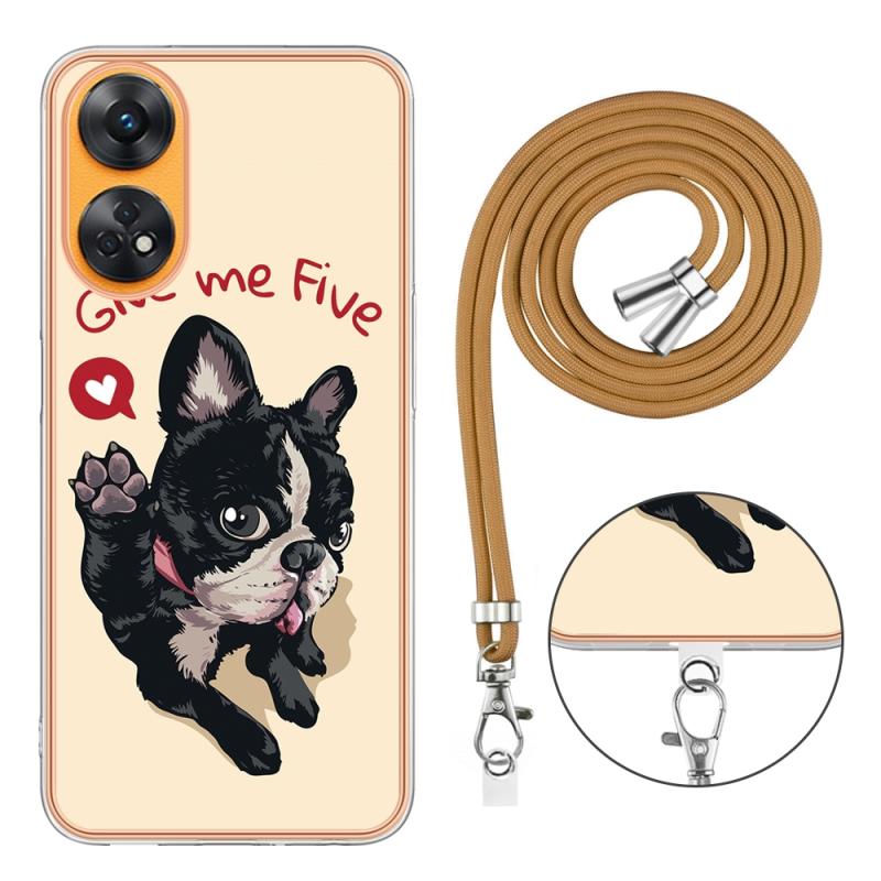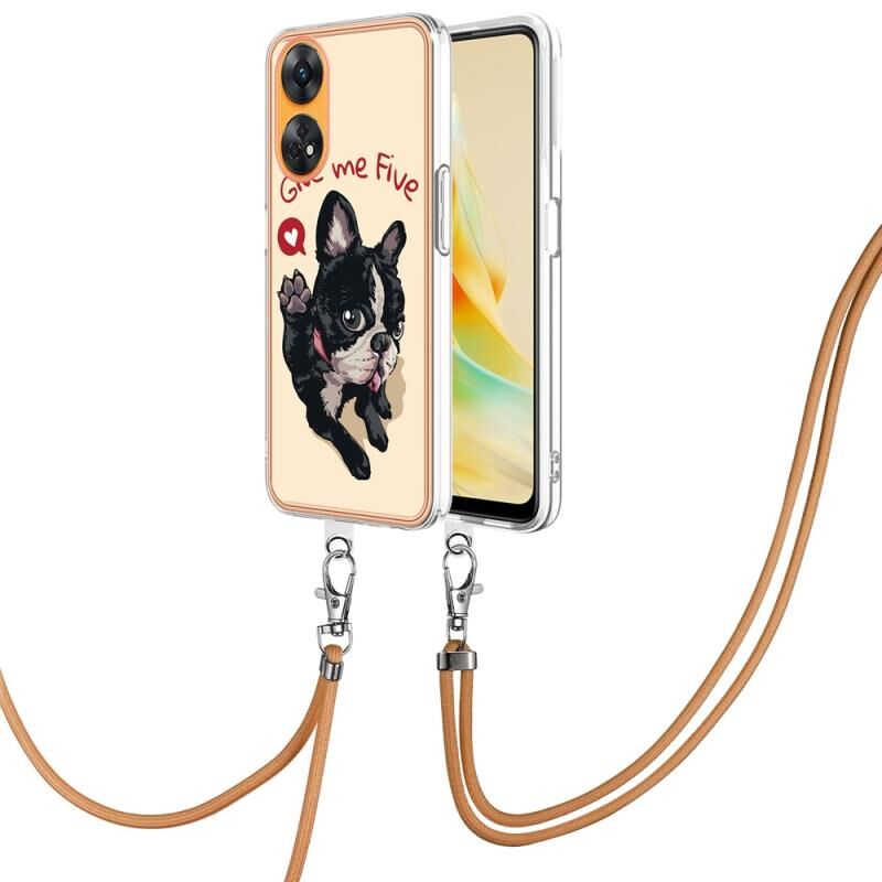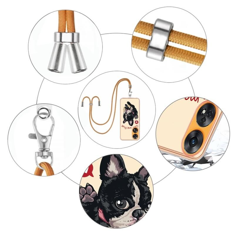 For OPPO Reno8 T 4G Electroplating Dual-side IMD Phone Case with Lanyard(Lucky Dog)
