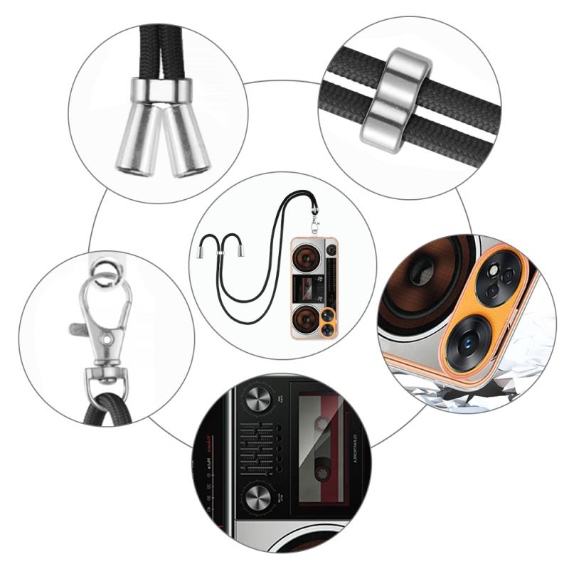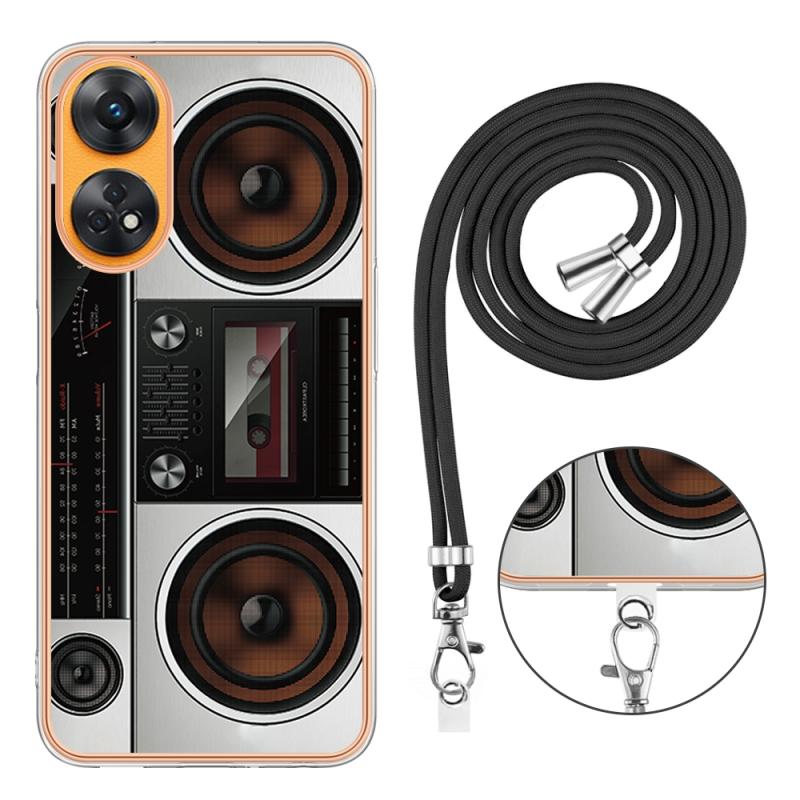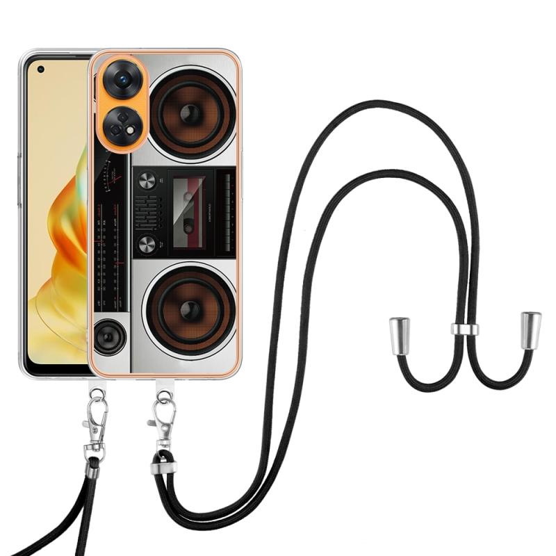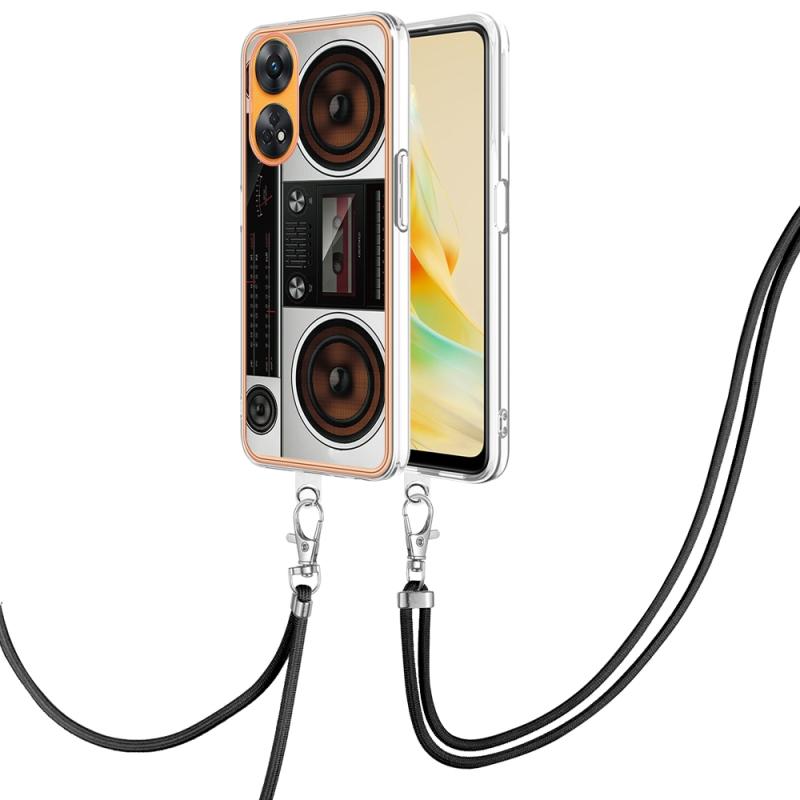 For OPPO Reno8 T 4G Electroplating Dual-side IMD Phone Case with Lanyard(Retro Radio)