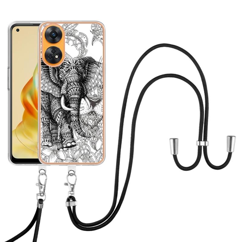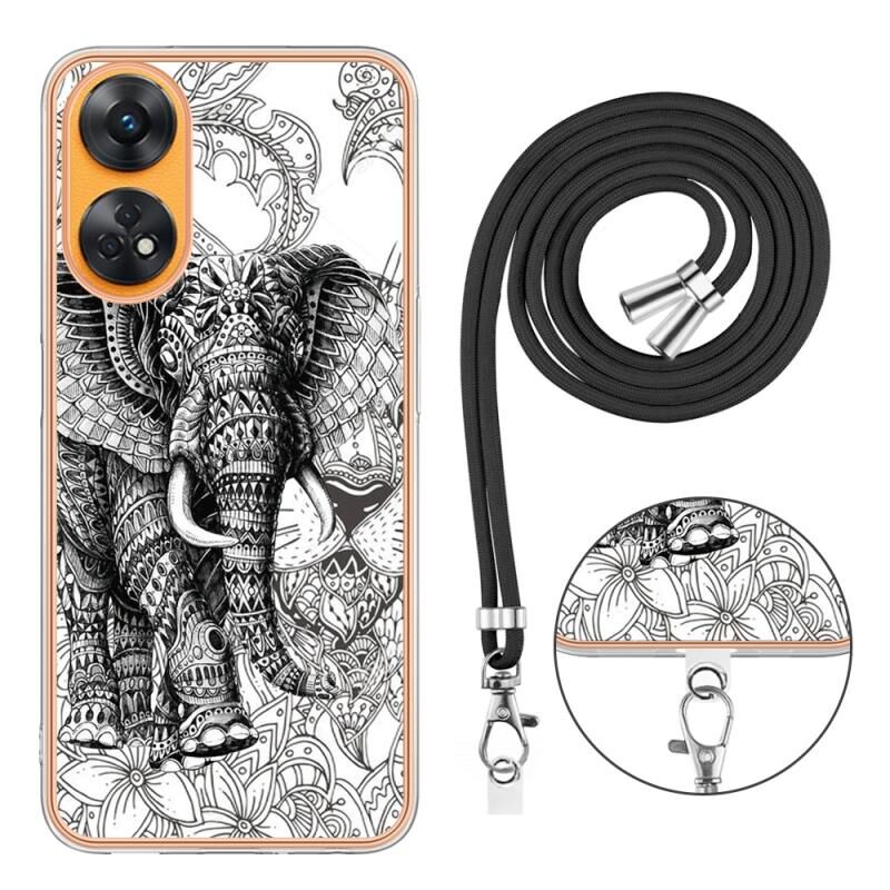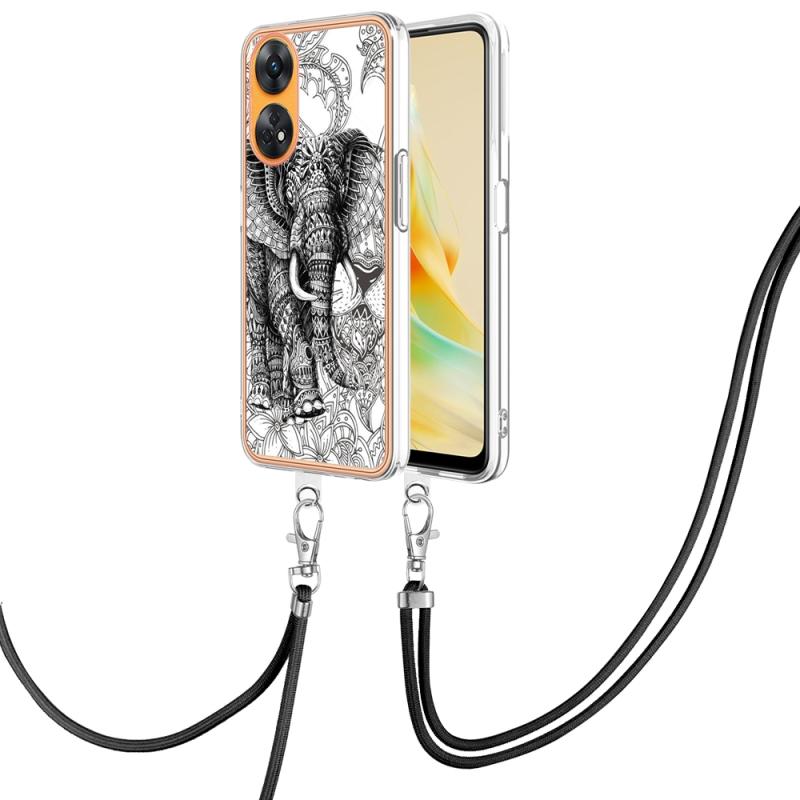 For OPPO Reno8 T 4G Electroplating Dual-side IMD Phone Case with Lanyard(Totem Elephant)