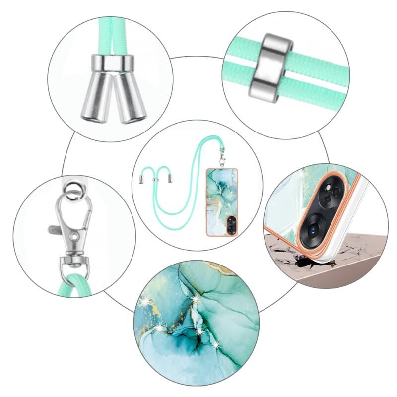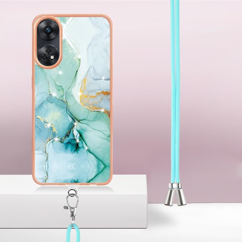 Θήκη τηλεφώνου για OPPO Reno8 T 4G με γαλβανισμό, σχέδιο μάρμαρου, διπλής όψης IMD με κορδόνι (Πράσινο 003)