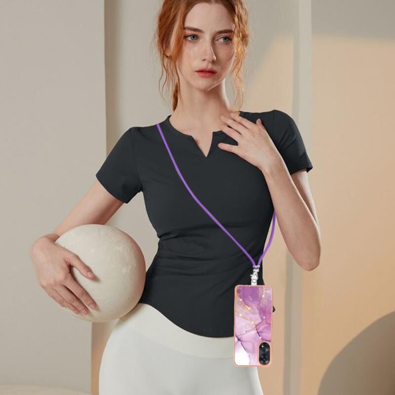 Θήκη τηλεφώνου για OPPO Reno8 T 4G με γαλβανισμό, σχέδιο μάρμαρου, διπλής όψης IMD με κορδόνι (Μωβ 001)