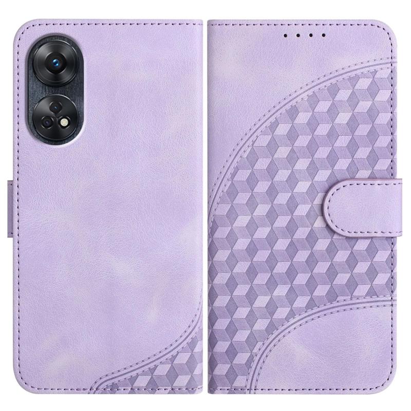 Θήκη δερμάτινη για OPPO Reno8 T 4G με ανάγλυφο σχέδιο κεφαλής ελέφαντα και κορδόνι (Ανοιχτό Μωβ)