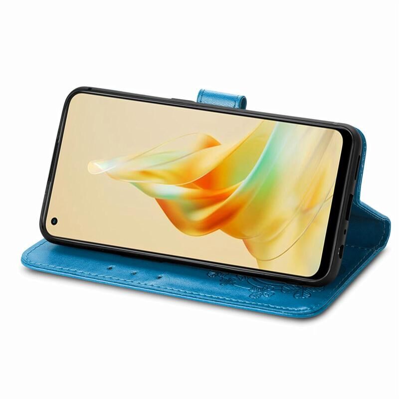 Για OPPO Reno8 T 4G τετράφυλλο κούμπωμα ανάγλυφο αγκράφα δερμάτινη θήκη τηλεφώνου (μπλε)