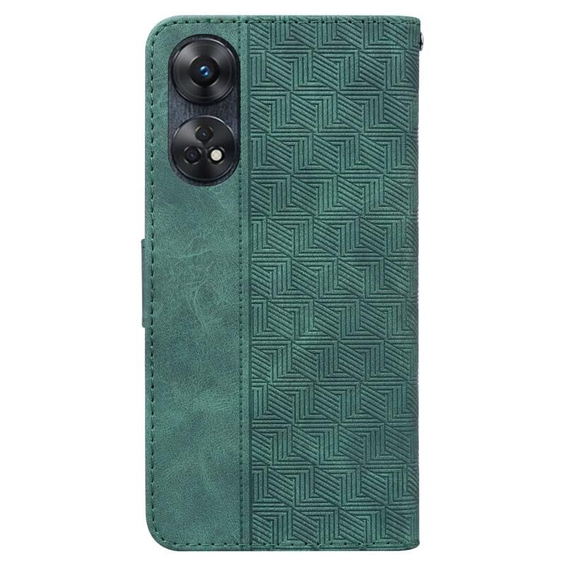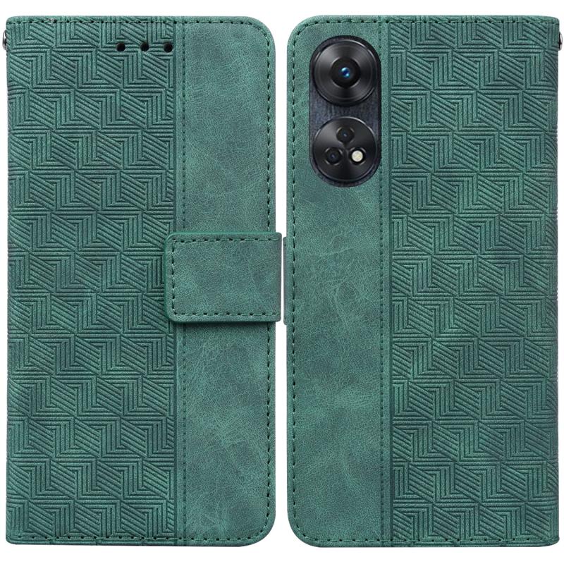 Θήκη τηλεφώνου από δέρμα με γεωμετρική ανάγλυφη διακόσμηση για OPPO Reno8 T 4G (πράσινο)