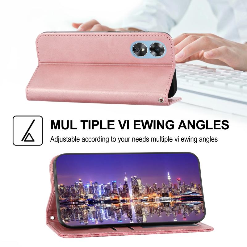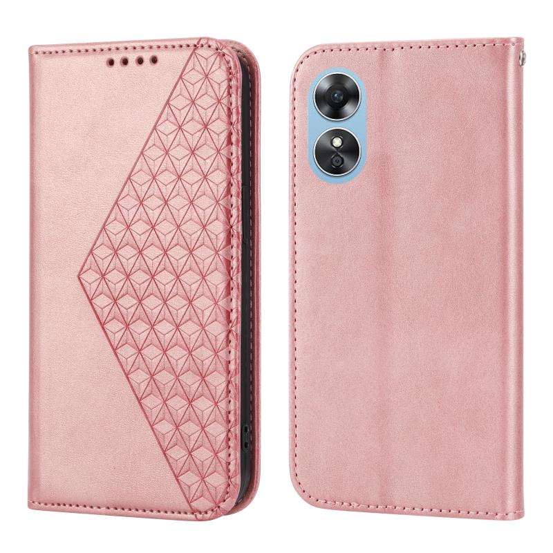 Θήκη τηλεφώνου από μαγνητικό δέρμα με υφή μοσχαριού Cubic Grid για OPPO Reno8 T 4G Global (Ροζ χρυσός)