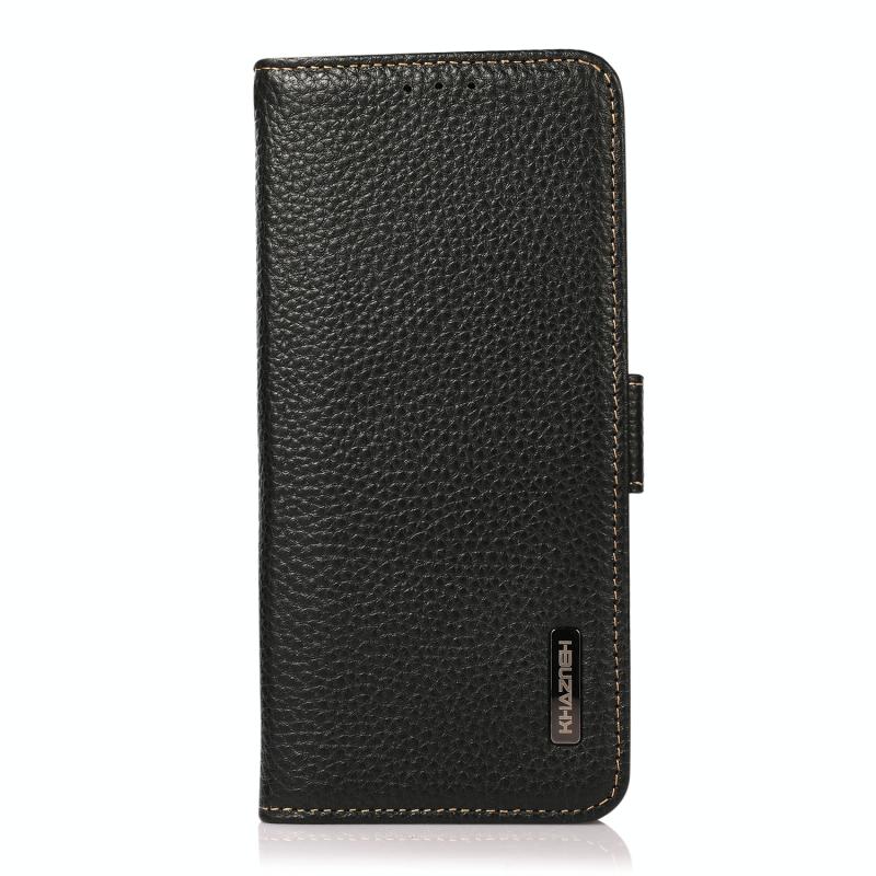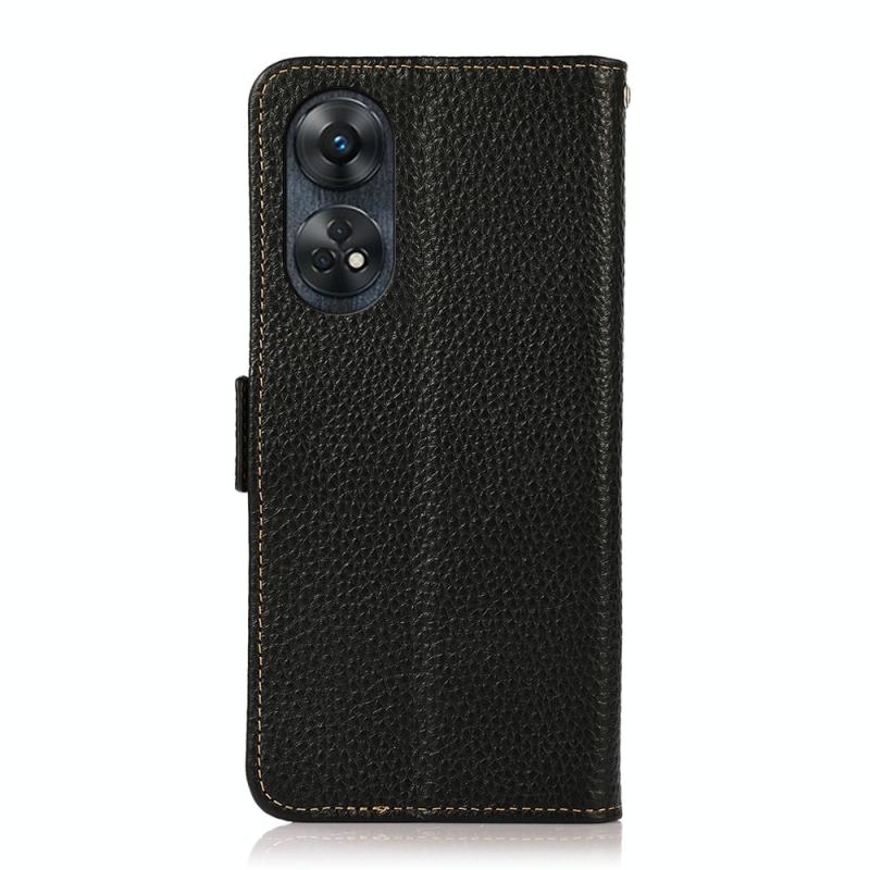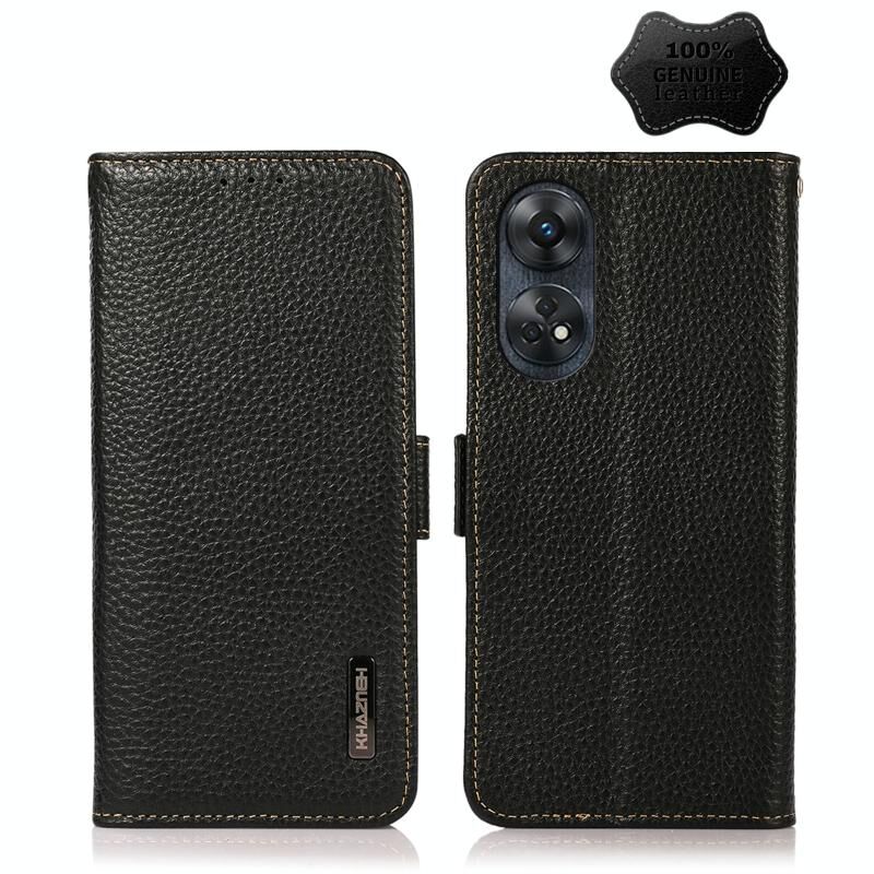 Θήκη τηλεφώνου OPPO Reno8 T 4G Global KHAZNEH με μαγνητικό κλείσιμο, γνήσιο δέρμα Litchi, RFID (Μαύρο)