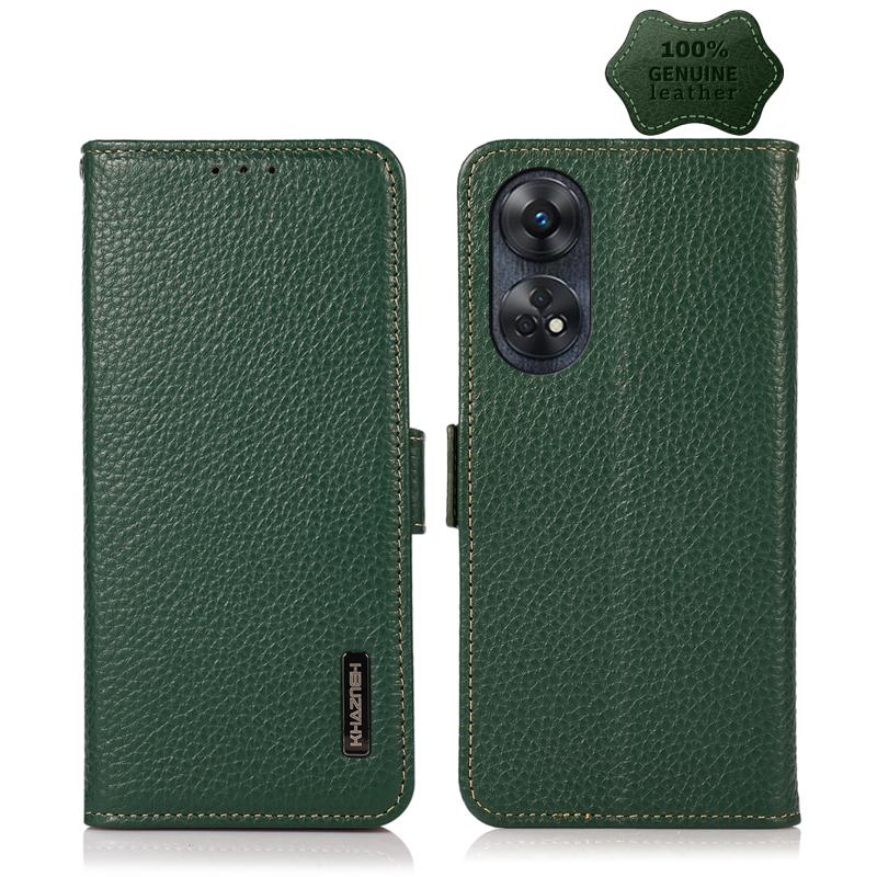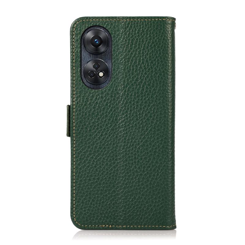 Θήκη τηλεφώνου OPPO Reno8 T 4G Global KHAZNEH με μαγνητικό κλείσιμο, γνήσιο δέρμα Litchi, RFID (πράσινο)