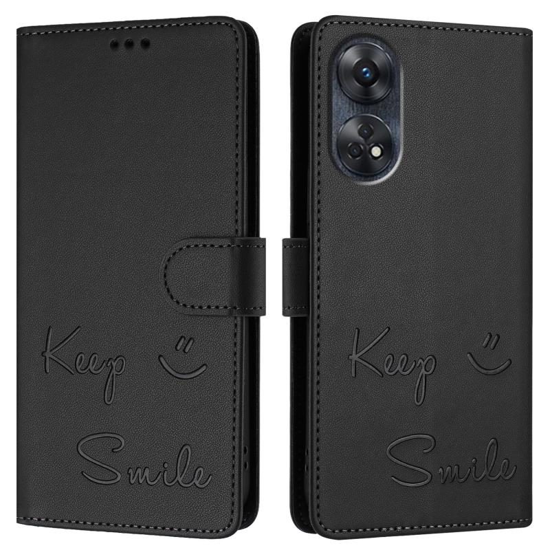 For OPPO Reno8 T 4G Global Smile Embossing RFID Leather Phone Case(Black)