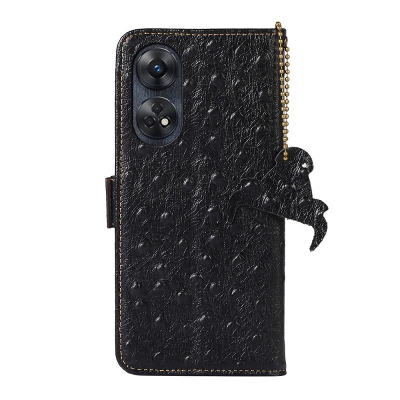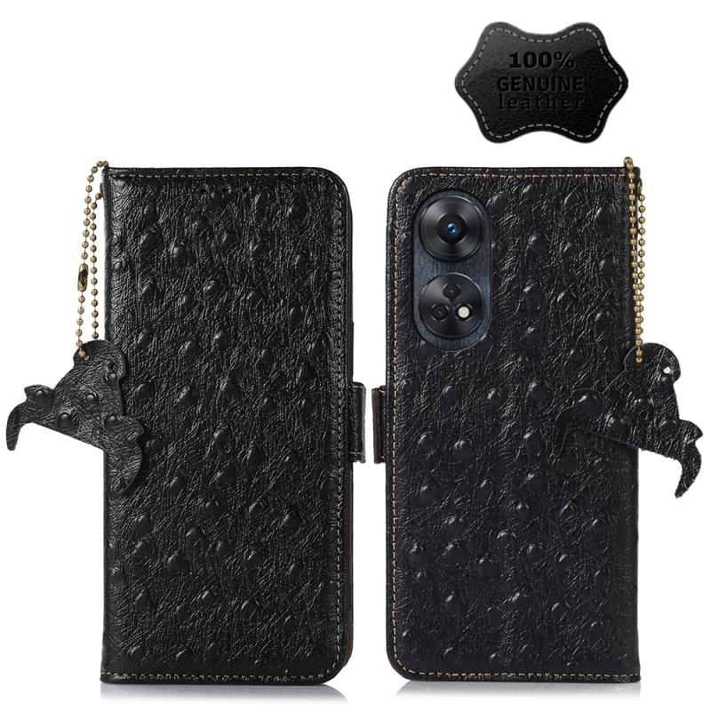For OPPO Reno8 T 4G Ostrich Pattern Genuine Leather RFID Phone Case(Black)