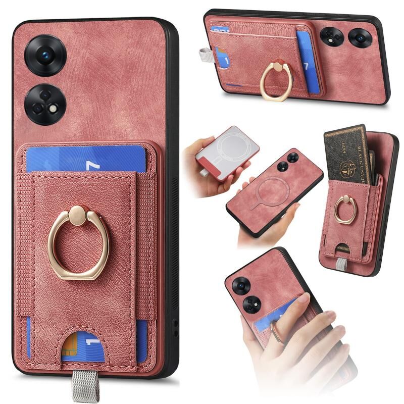 Για OPPO Reno8 T 4G Ρετρό Splitable μαγνητική κάρτα τσάντα δερμάτινη θήκη τηλεφώνου (ροζ)