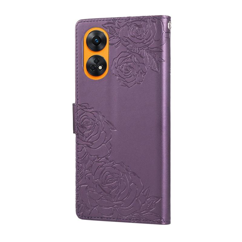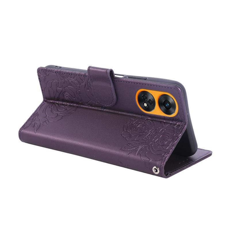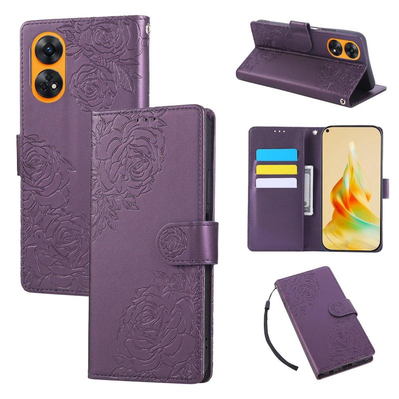 For OPPO Reno8 T 4G Rose Flower Embossed 3-Card Slots Leather Phone Case(Deep Purple)