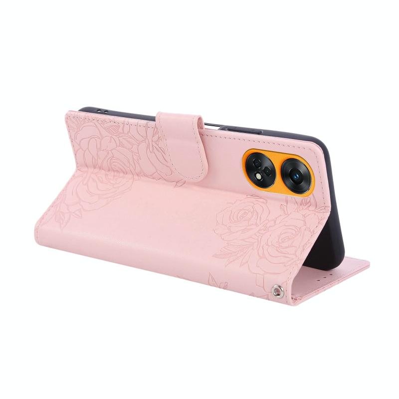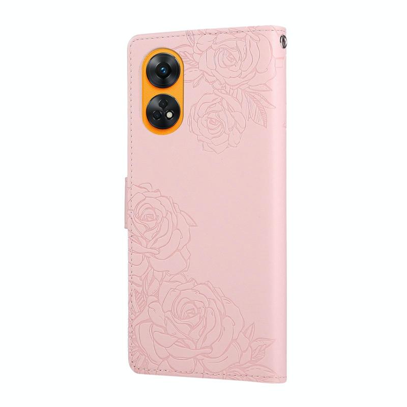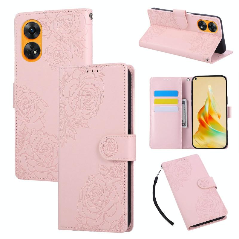 Θήκη δέρματος με ανάγλυφο λουλούδι για OPPO Reno8 T 4G (Ροζ)