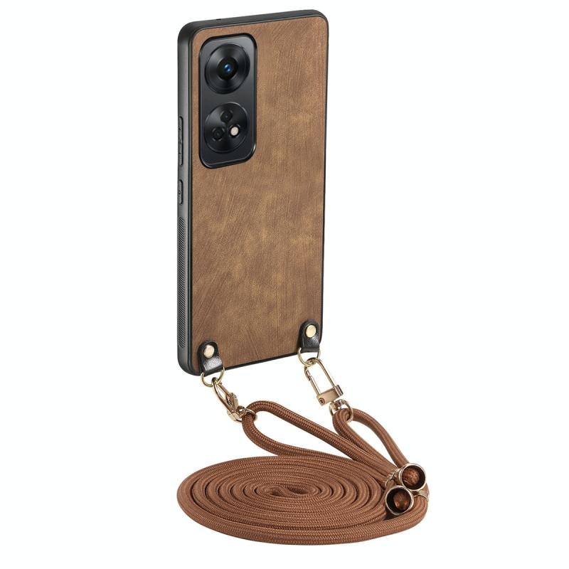 For OPPO Reno8 T 4G Vintage Leather PC Back Cover Phone Case with Crossbody Strap(Brown)