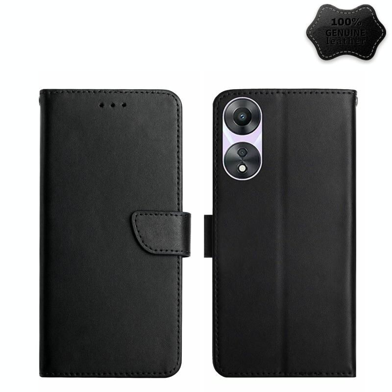 Θήκη τηλεφώνου με γνήσιο δέρμα, αντι-δακτυλικά αποτυπώματα, flip για OPPO Reno8 T 5G/A1 Pro 5G (Μαύρο)