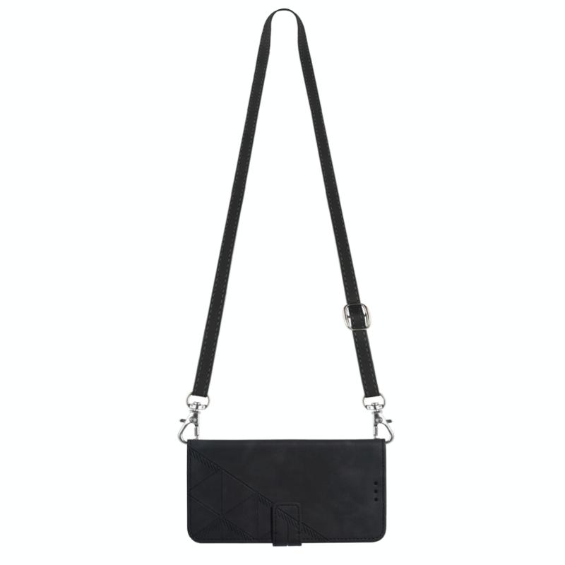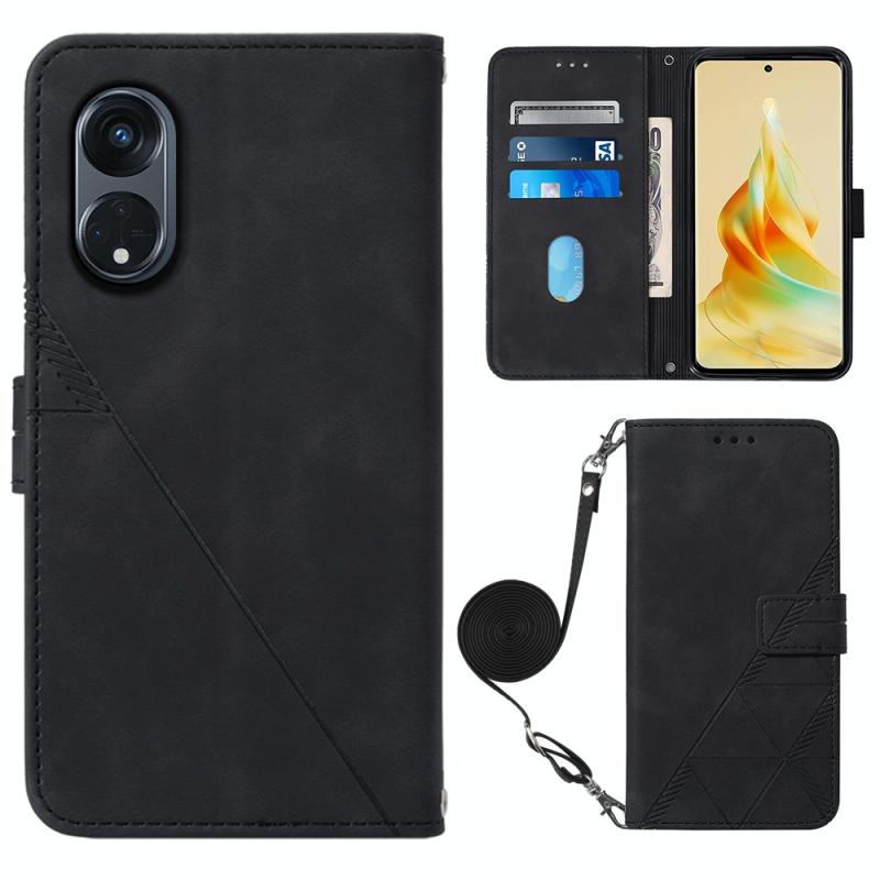 Για OPPO Reno8 T 5G / A1 Pro 5G Παγκόσμια Θήκη Τηλεφώνου από Δέρμα με Αναγλυφία και Ασφάλεια στον Ώμο (Μαύρο)