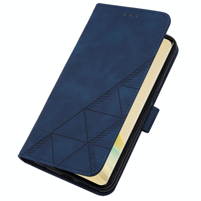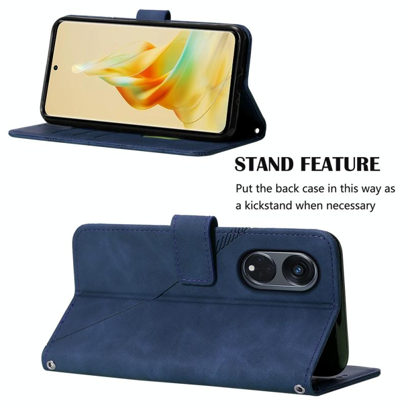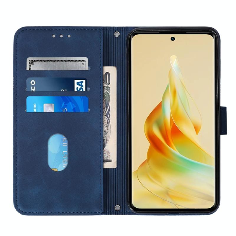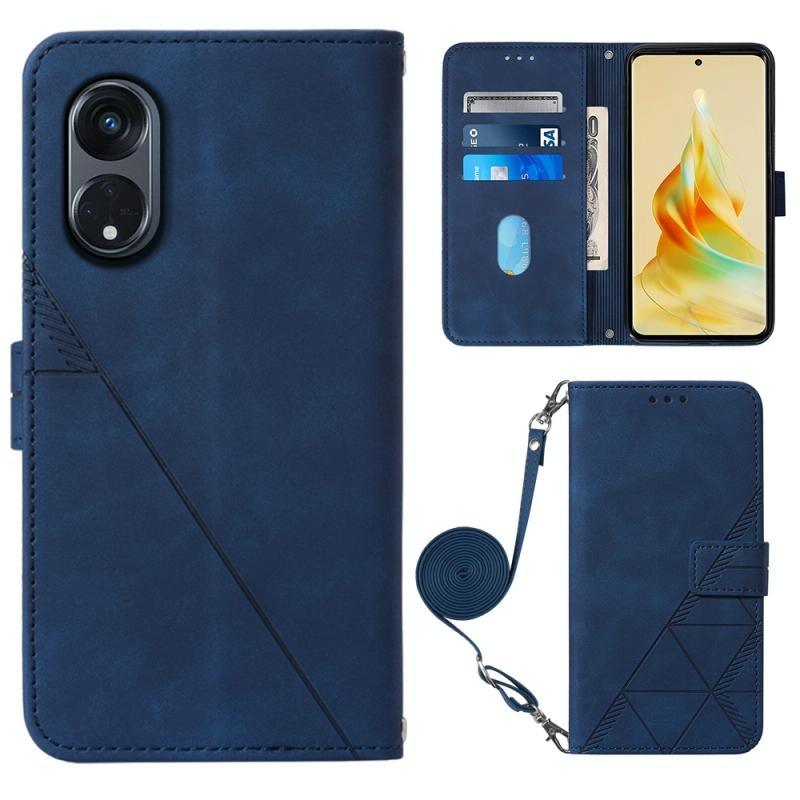 Για OPPO Reno8 T 5G / A1 Pro 5G Παγκόσμια Θήκη Τηλεφώνου από Δέρμα με Αναγλυφία και Ασφάλεια στον Ώμο (Μπλε)