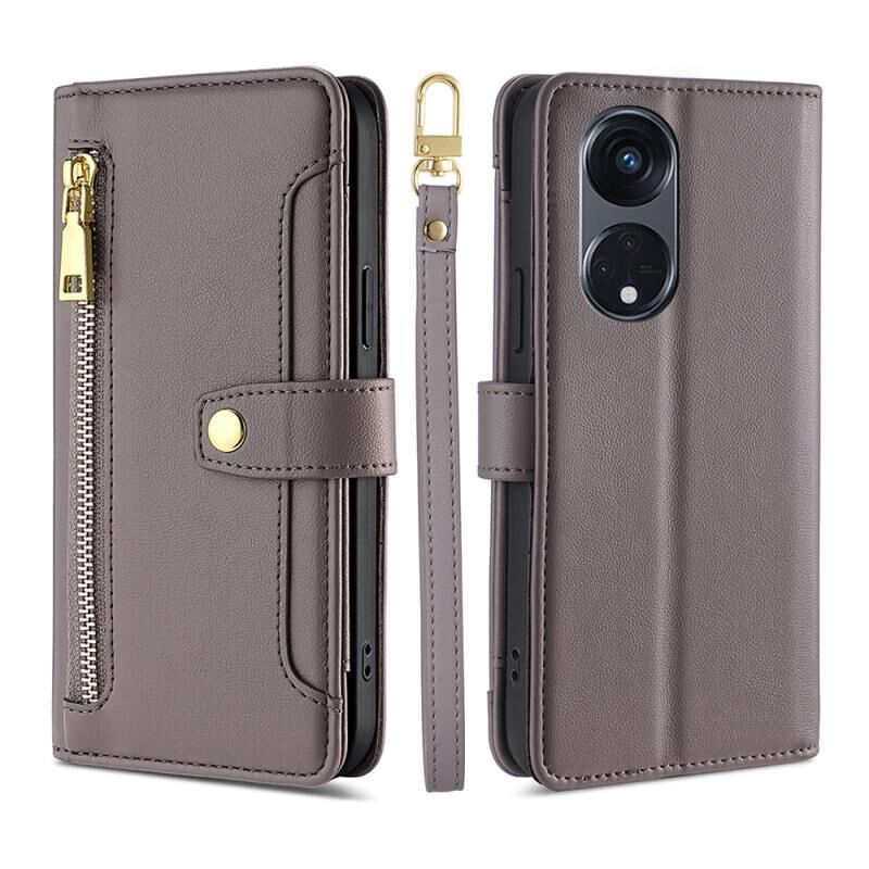 Θήκη τηλεφώνου από δέρμα με υφή προβάτου, με φερμουάρ και λουρί για OPPO Reno8 T 5G/A1 Pro 5G (Μαύρο)