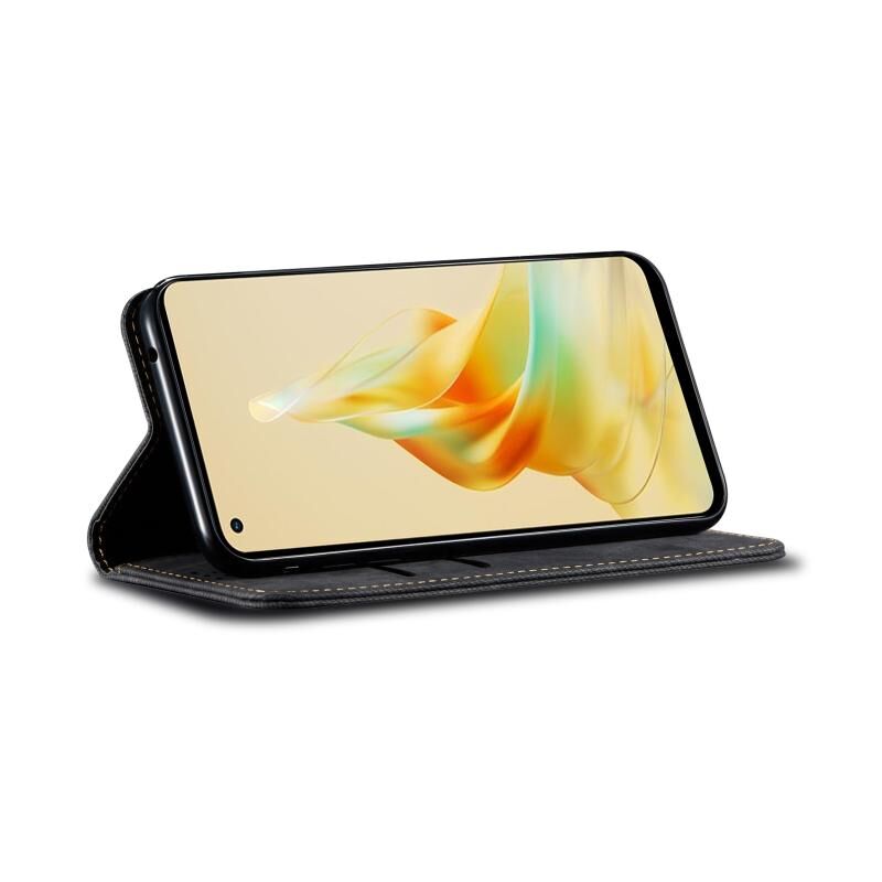 Για OPPO Reno8 T 5G / A1 Pro Denim Texture Δερμάτινη θήκη τηλεφώνου (Μαύρο)
