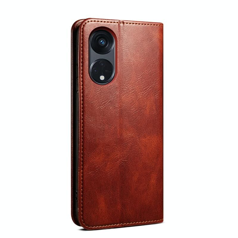 Θήκη τηλεφώνου από δέρμα με υφή λαδιού και τρελού αλόγου για OPPO Reno8 T 5G / A1 Pro (Καφέ)