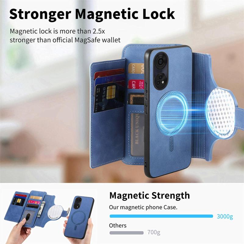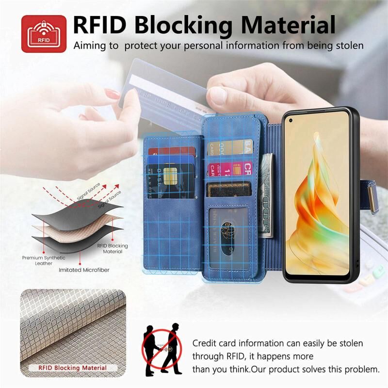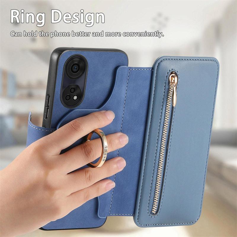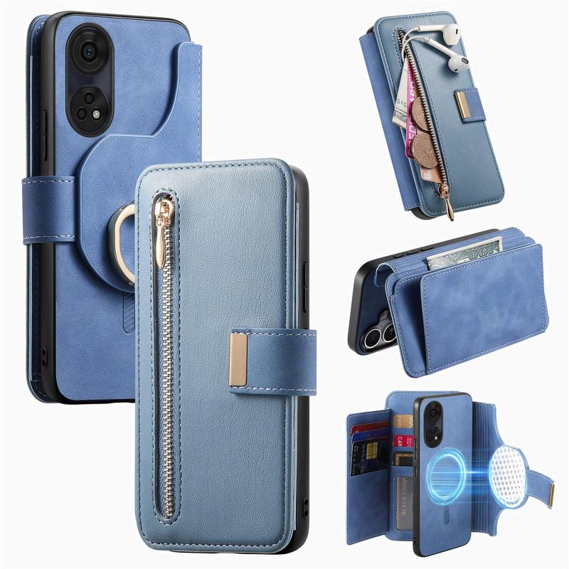 For OPPO Reno8 T 5G / A1 Pro Ring Zipper Wallet RFID Blocking MagSafe Leather Phone Case(Blue)