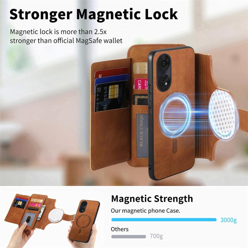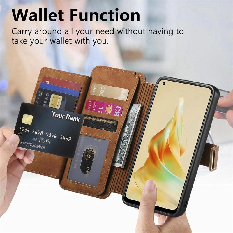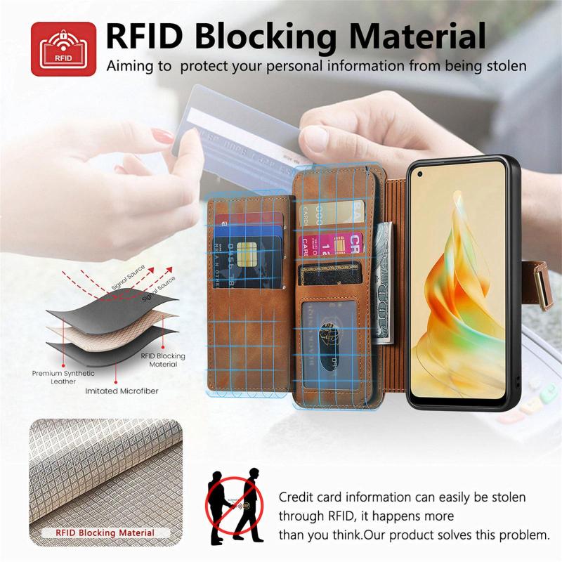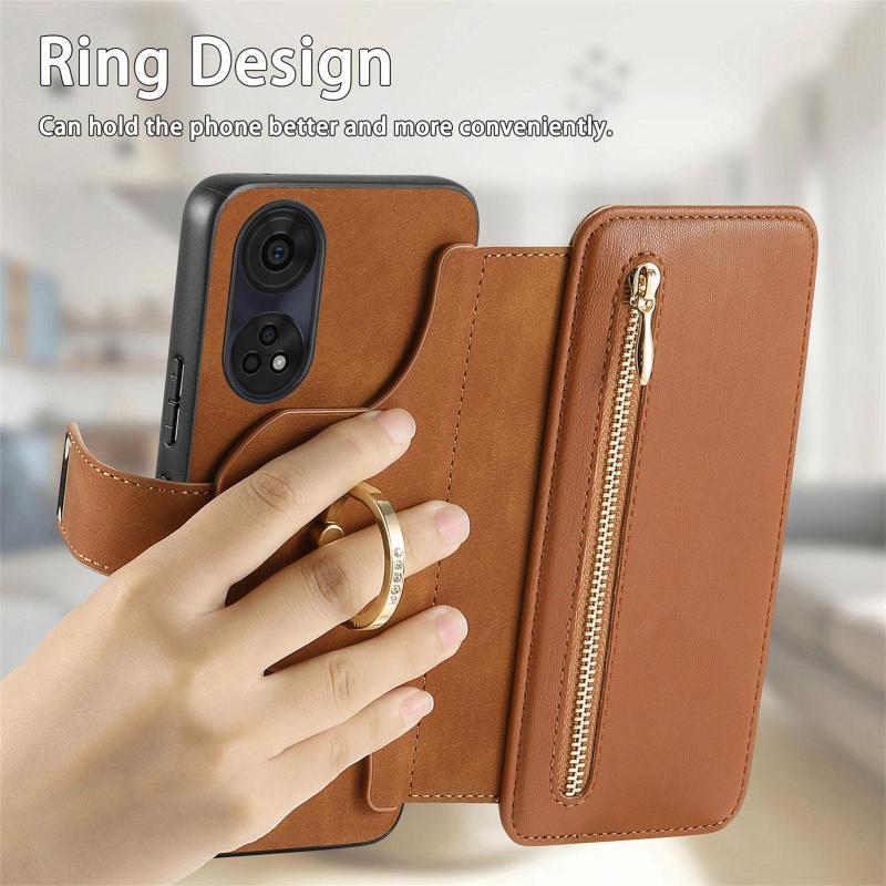 For OPPO Reno8 T 5G / A1 Pro Ring Zipper Wallet RFID Blocking MagSafe Leather Phone Case(Brown)