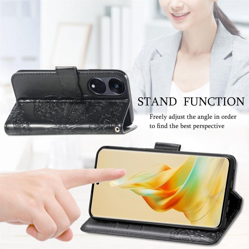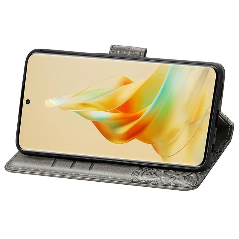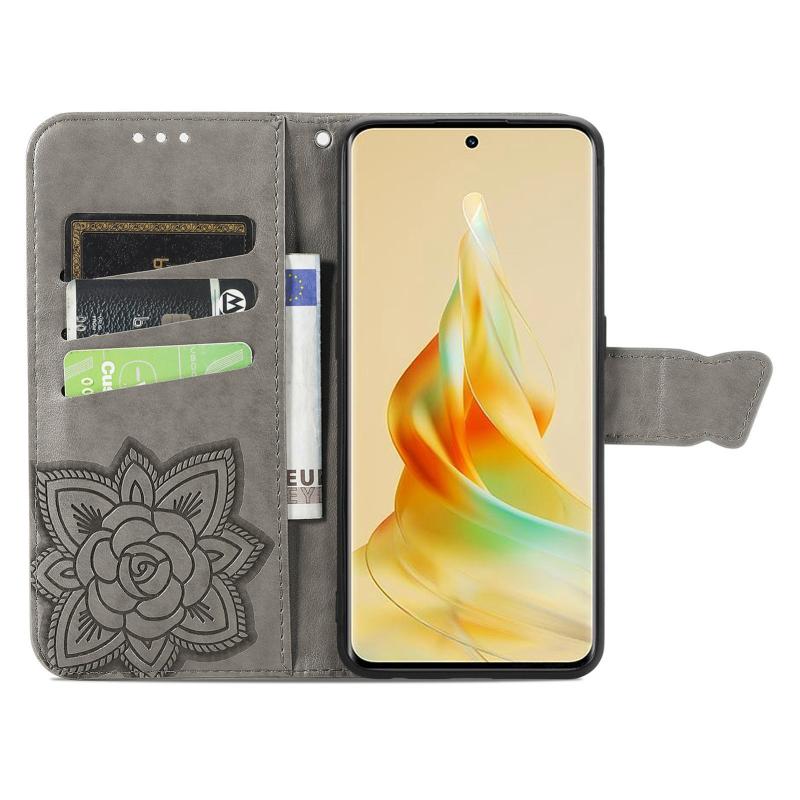 For OPPO Reno8 T 5G Butterfly Love Flower Embossed Flip Leather Phone Case(Gray)