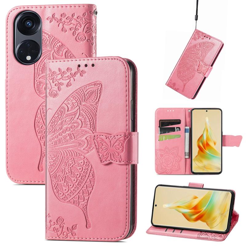 For OPPO Reno8 T 5G Butterfly Love Flower Embossed Flip Leather Phone Case(Pink)