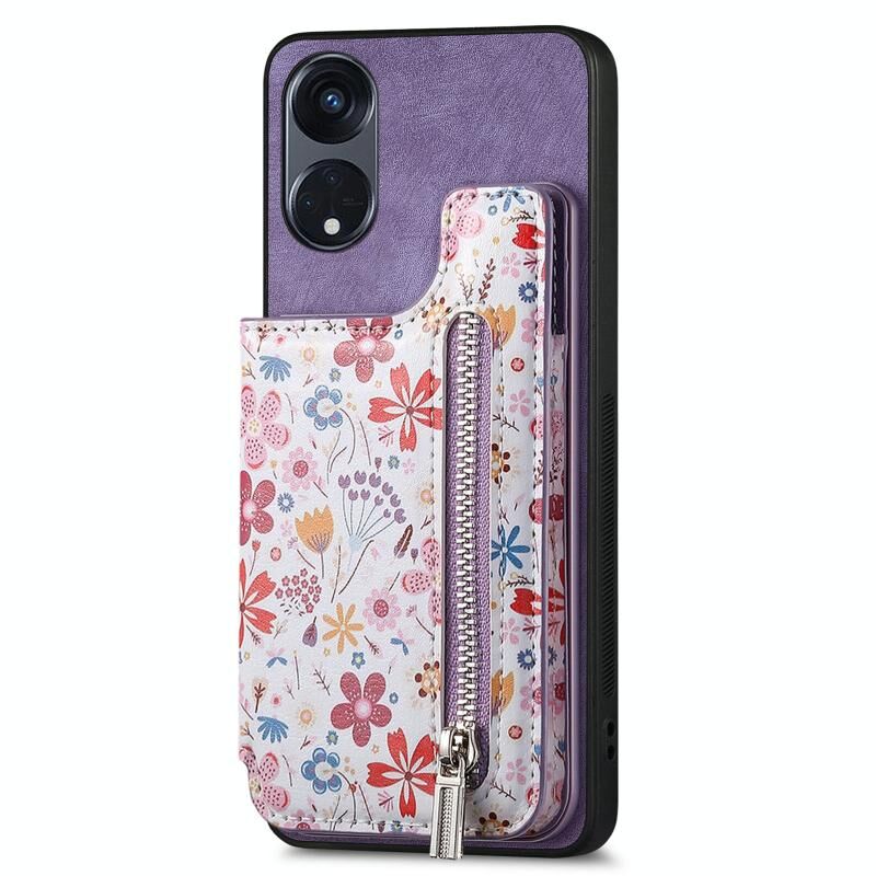Για OPPO Reno8 T 5G Ρετρό ζωγραφισμένο φερμουάρ πορτοφόλι πίσω τηλέφωνο υπόθεση (μωβ)