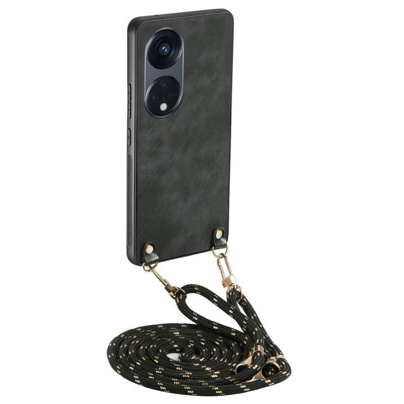 Θήκη κινητού τηλεφώνου OPPO Reno8 T 5G με δερμάτινη υφή PC και λουρί crossbody (Καφέ)