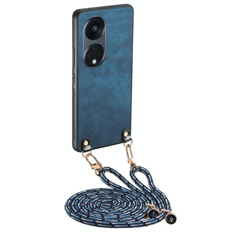Θήκη κινητού τηλεφώνου OPPO Reno8 T 5G με δερμάτινη υφή PC και λουρί crossbody (Καφέ)