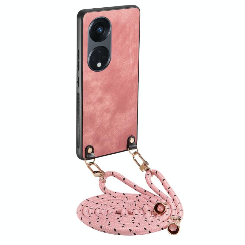 Θήκη κινητού τηλεφώνου OPPO Reno8 T 5G με δερμάτινη υφή PC και λουρί crossbody (Καφέ)