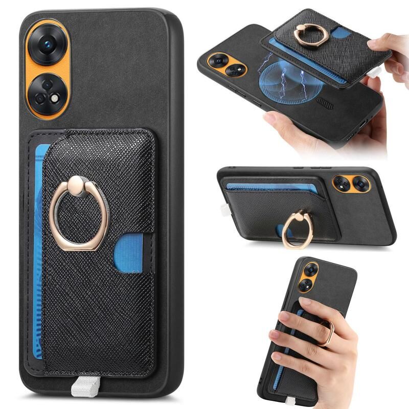 Θήκη τηλεφώνου MagSafe για OPPO Reno8 T / A1 Pro, Ρετρό Δερμάτινη με Δακτύλιο και Θήκη Κάρτας στο Πλαϊνό Μέρος (Κίτρινο)