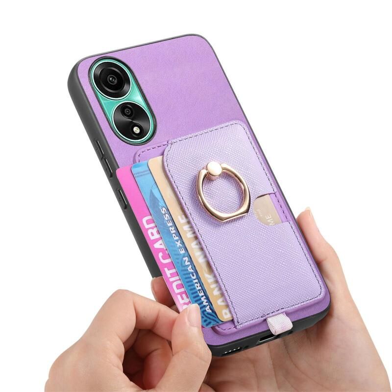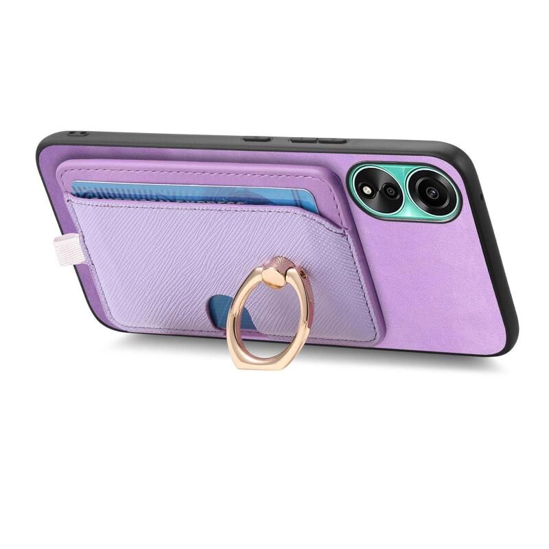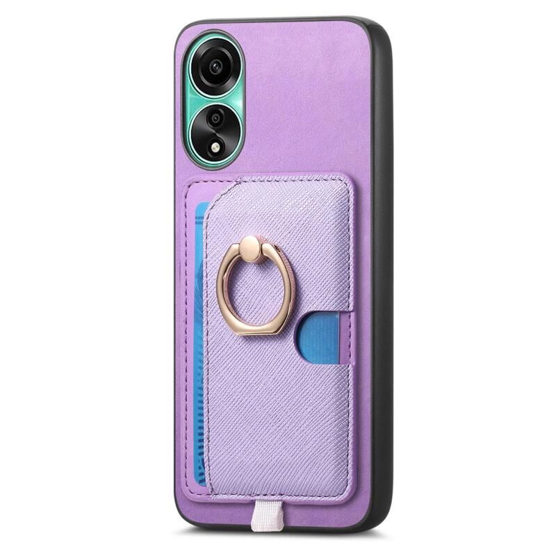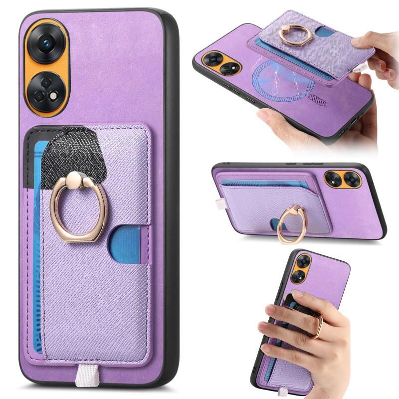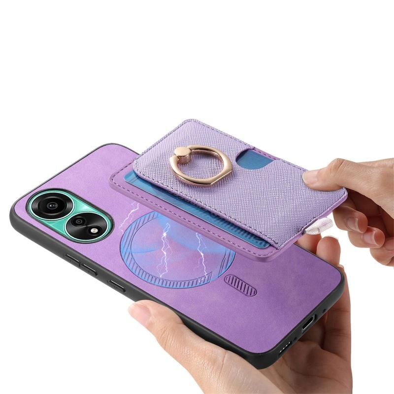 Θήκη τηλεφώνου MagSafe για OPPO Reno8 T / A1 Pro, Ρετρό Δερμάτινη με Δακτύλιο και Θήκη Κάρτας στο Πλαϊνό Μέρος (Κίτρινο)