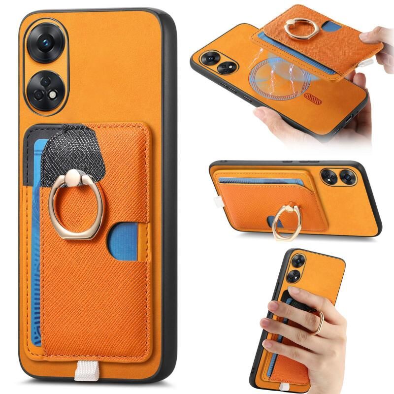 Θήκη τηλεφώνου MagSafe για OPPO Reno8 T / A1 Pro, Ρετρό Δερμάτινη με Δακτύλιο και Θήκη Κάρτας στο Πλαϊνό Μέρος (Κίτρινο)