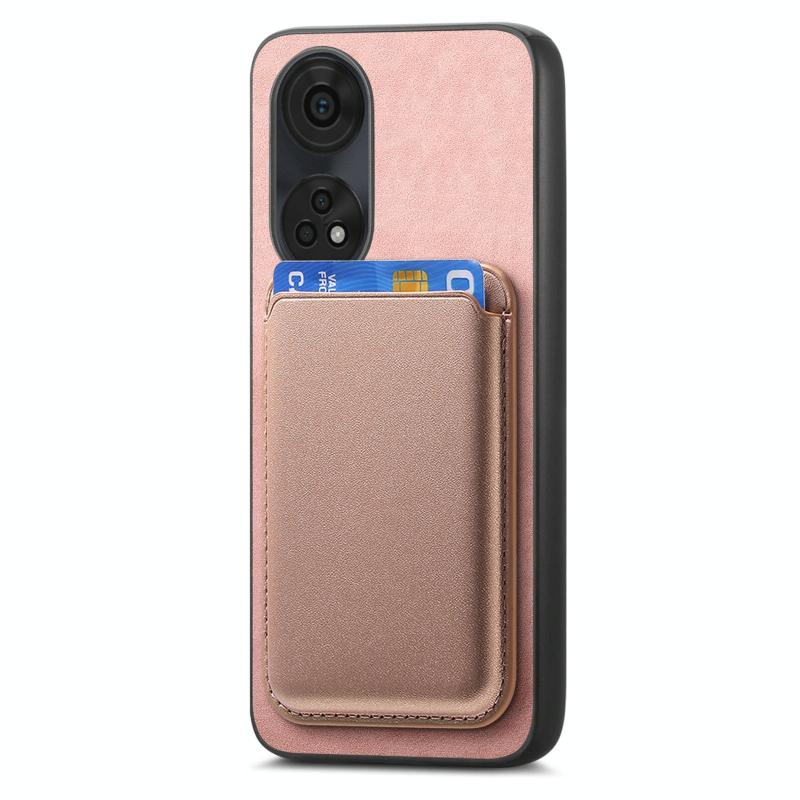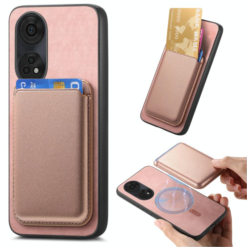 Για OPPO Reno8 T / A1 Pro Ρετρό Θήκη Κάρτας MagSafe PU (Ροζ)