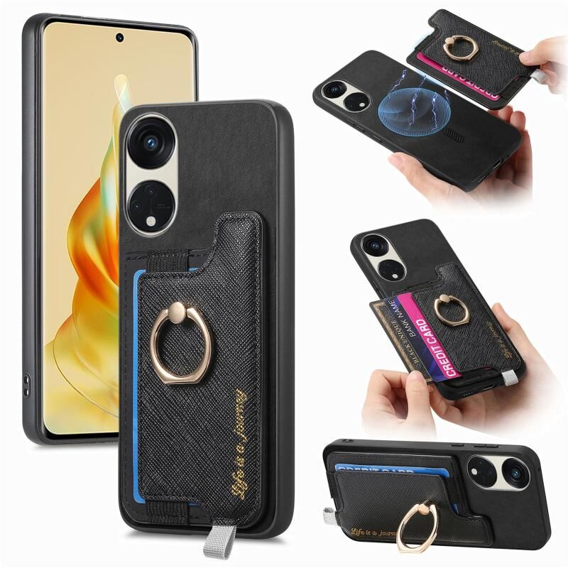 Θήκη τηλεφώνου για OPPO Reno8 T / A1 Pro, Ρετρό Magsafe, Δερμάτινη με Δαχτυλίδι και Θήκη Καρτών (Μαύρο)