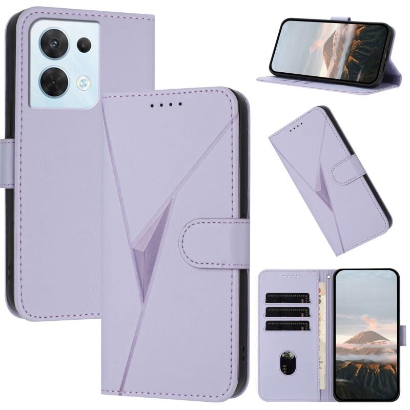 Θήκη τηλεφώνου από δέρμα με μαγνητικό κούμπωμα σε τριγωνικό μοτίβο για OPPO Reno8 (Σκούρο Μωβ)