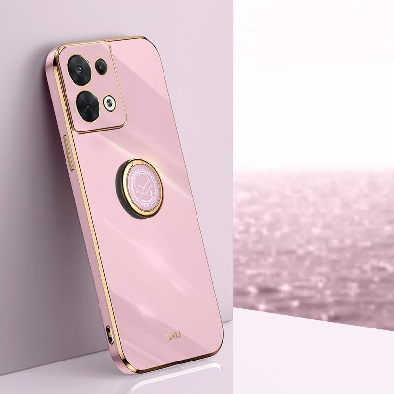 Θήκη τηλεφώνου OPPO Reno8 XINLI με ευθείες άκρες, ηλεκτρολυτική επίστρωση TPU και δακτύλιο στήριξης (Κεραμιδί μωβ)