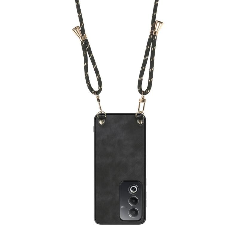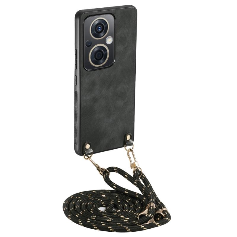 For OPPO Reno8 Z Vintage Leather PC Back Cover Phone Case with Crossbody Strap(Black)