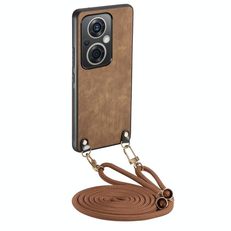 For OPPO Reno8 Z Vintage Leather PC Back Cover Phone Case with Crossbody Strap(Brown)