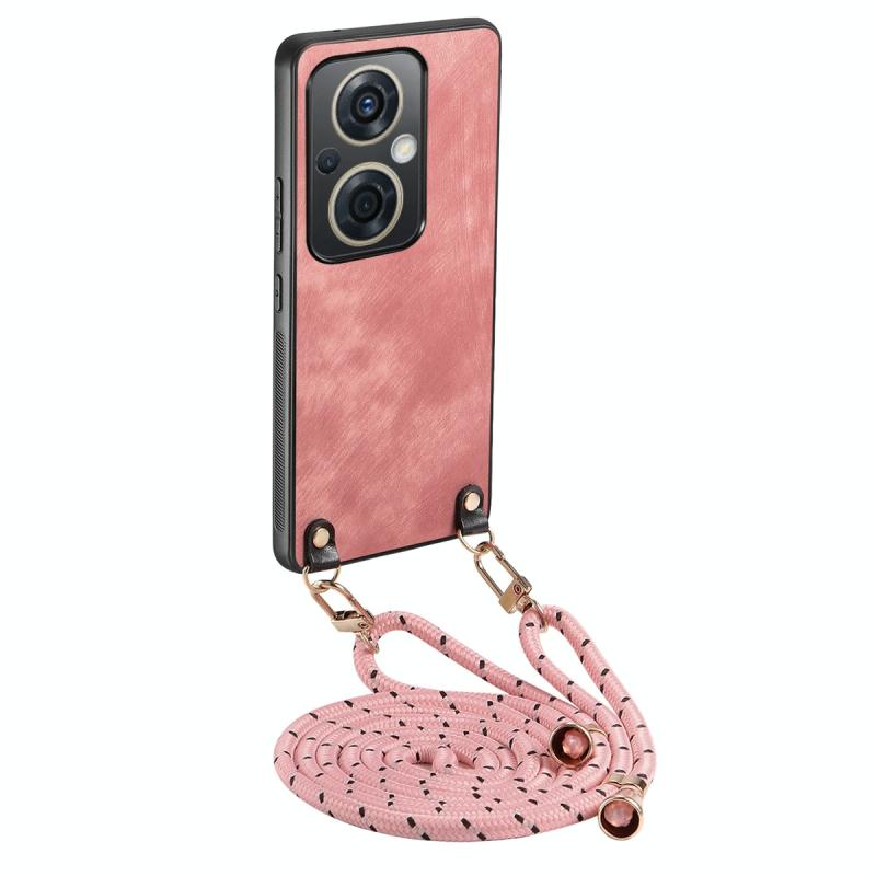 Θήκη κινητού τηλεφώνου OPPO Reno8 Z με δερμάτινη υφή Vintage, από PC με λουρί crossbody (Καφέ)