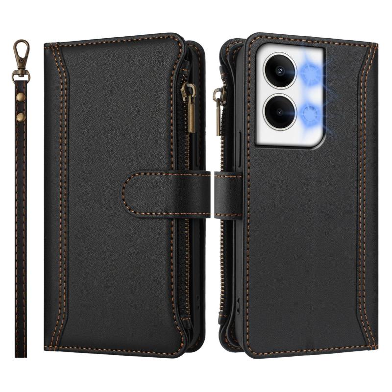 For OPPO Reno9 5G / 9 Pro 5G Magnetic Closure 9 Card Slots Zipper Leather Case with Hand Strap(Black)