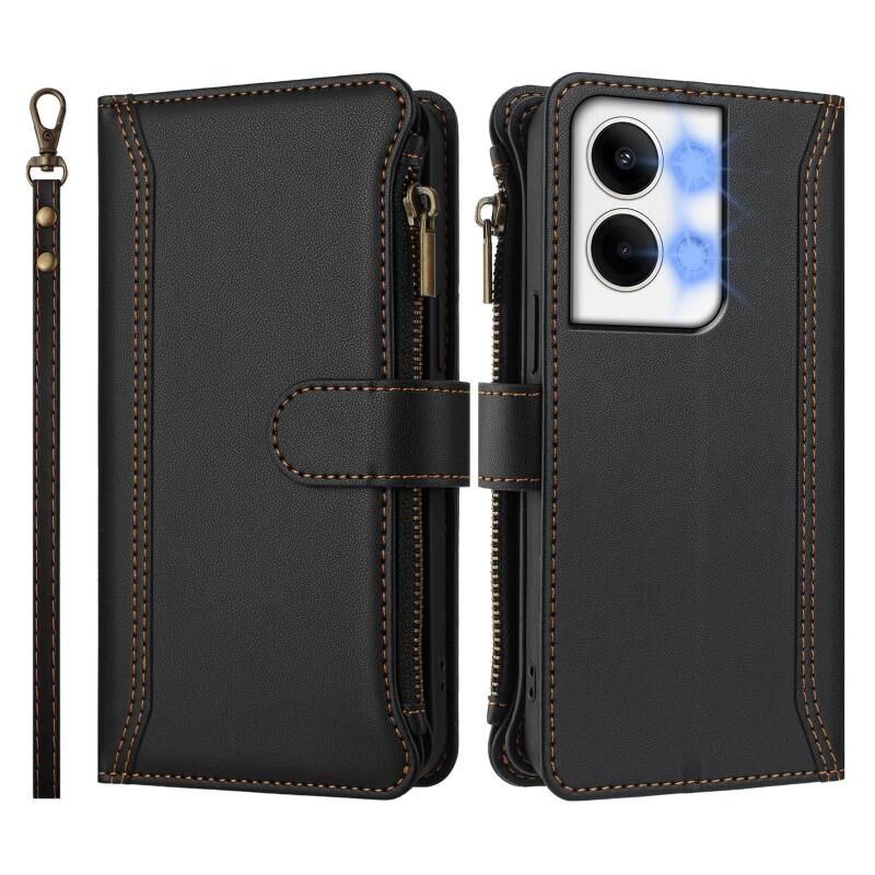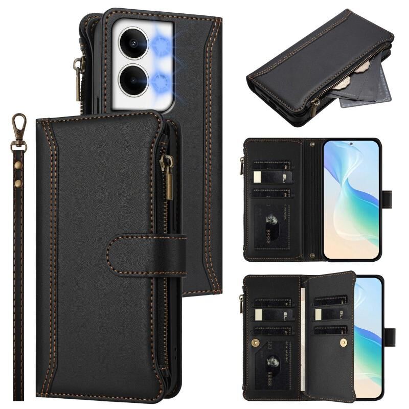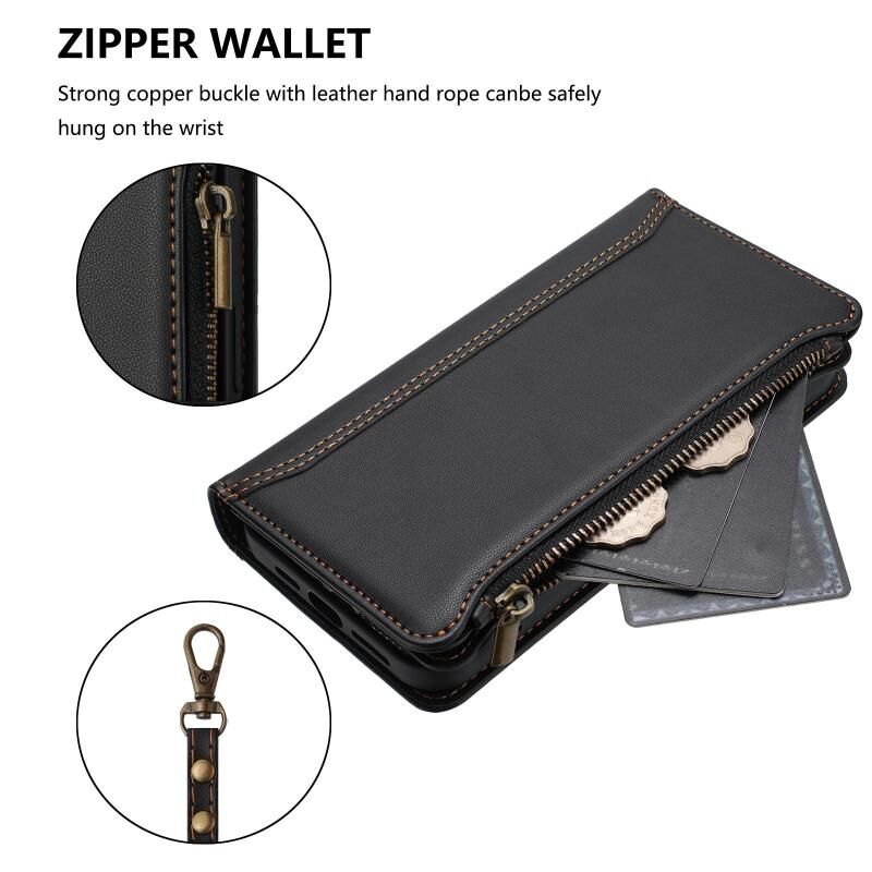 Για OPPO Reno9 5G / 9 Pro 5G Μαγνητικό Κλείσιμο 9 Θήκες Κάρτας Δερμάτινη Θήκη με Φερμουάρ και Λουρί Χεριού (Μαύρο)