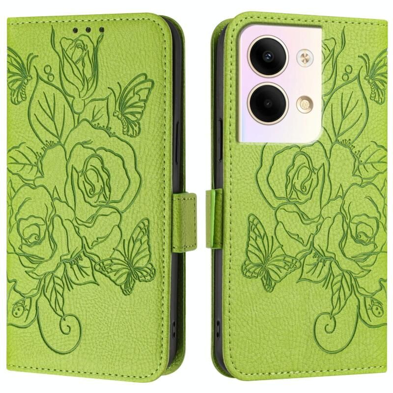 Για OPPO Reno9 5G / Reno9 Pro 5G ανάγλυφο Rose RFID Anti-theft Δερμάτινη θήκη τηλεφώνου (πράσινο)