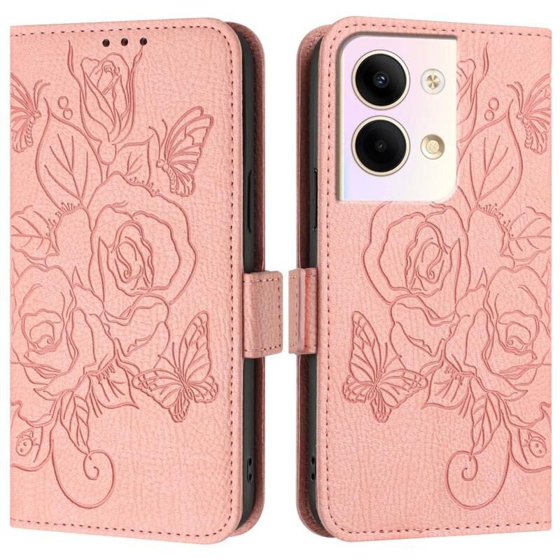Για OPPO Reno9 5G / Reno9 Pro 5G ανάγλυφο Rose RFID Anti-theft Δερμάτινη θήκη τηλεφώνου (ρόζ)