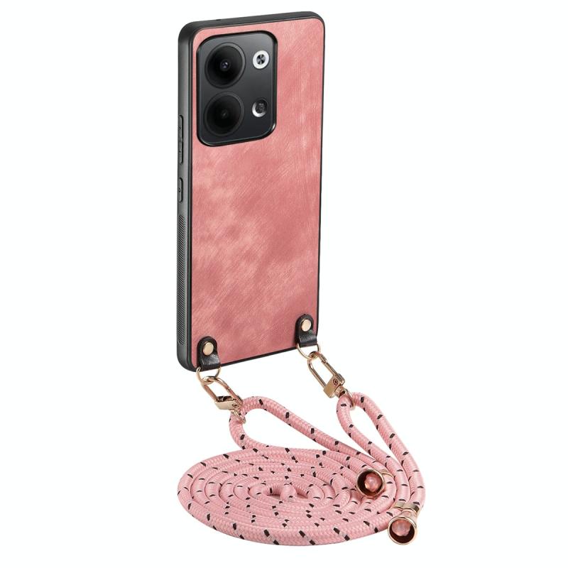 Θήκη κινητού τηλεφώνου OPPO Reno9 5G με δερμάτινη πλάτη PC σε vintage στυλ με λουρί crossbody (Καφέ)