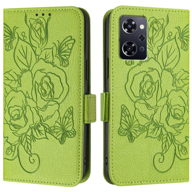 Για OPPO Reno9 Ένα ανάγλυφο Rose RFID Anti-theft δερμάτινη θήκη τηλεφώνου (Πράσινο)