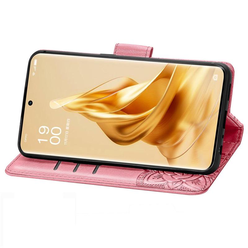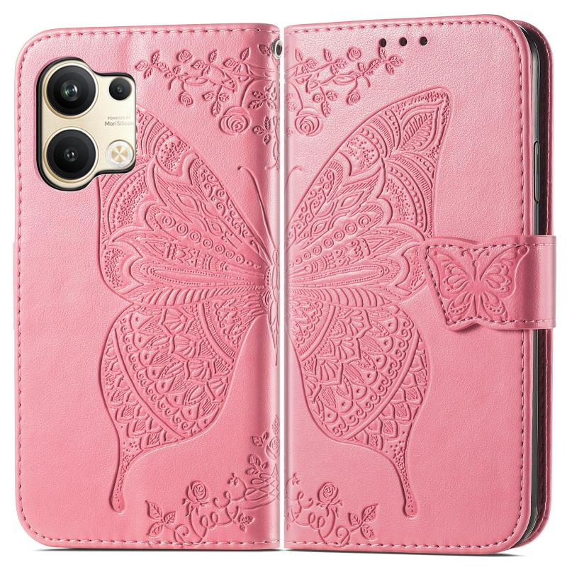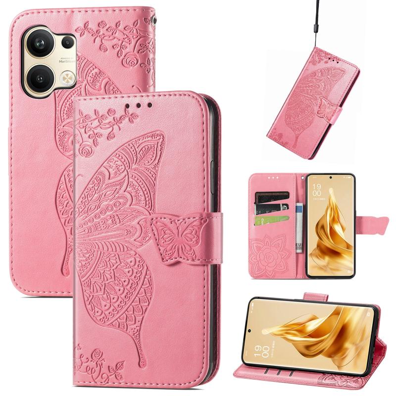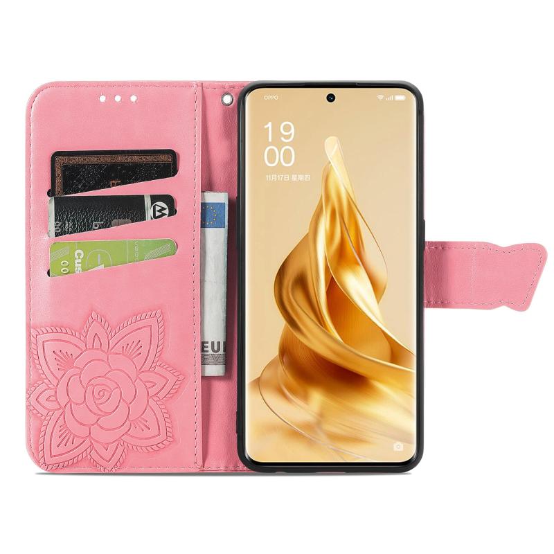 For OPPO Reno9 Butterfly Love Flower Embossed Leather Phone Case(Pink)