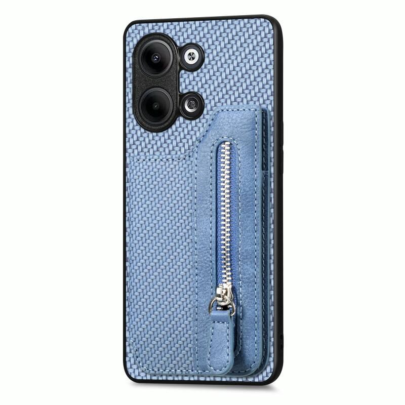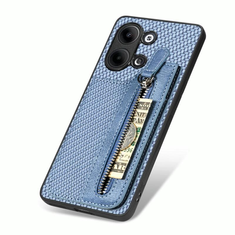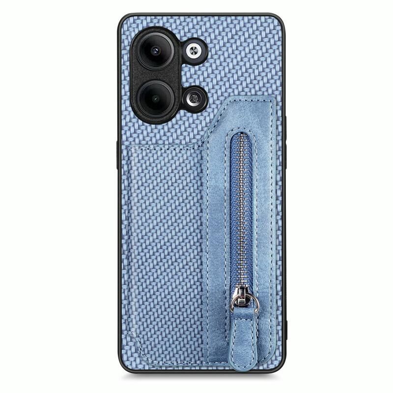 Για OPPO Reno9 Carbon Fiber Flip φερμουάρ πορτοφόλι τηλέφωνο υπόθεση (Μπλε)